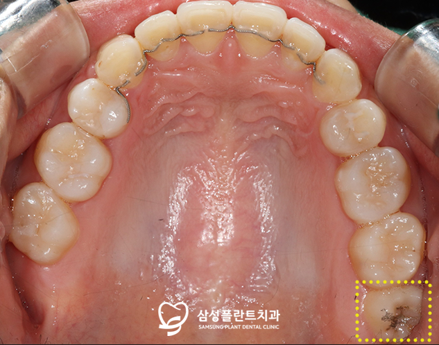 왼쪽 위의 사랑니를 관찰할 수 있었습니다.
